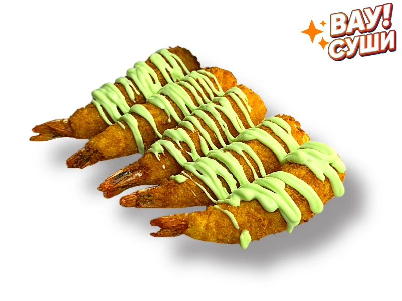 Состав: Тигровые креветки, панировочные сухари, васаби соус Порция: 5 шт