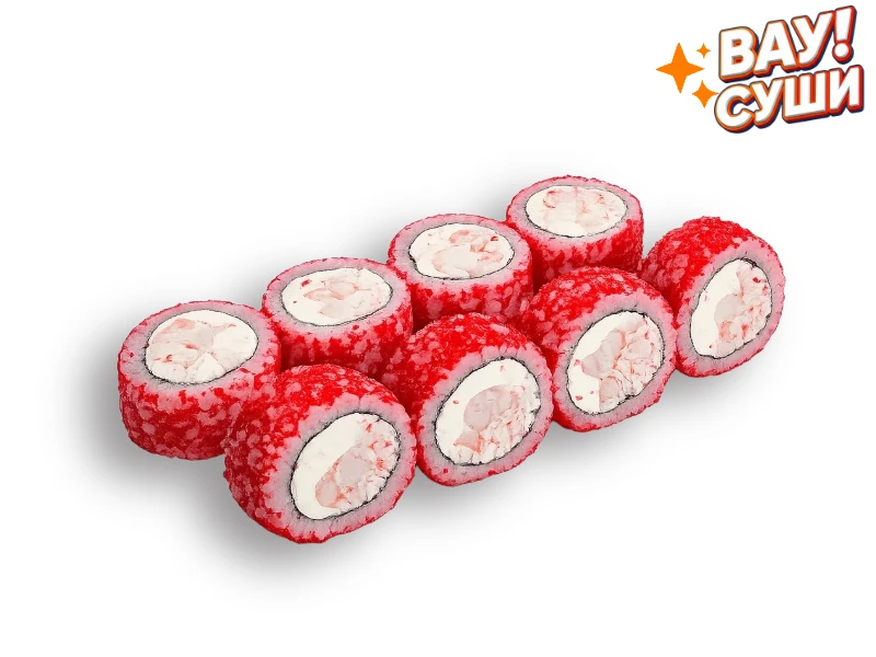 Состав: рис, нори, сливочный сыр, краб-крем, тигровая креветка, красная масаг